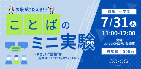 毎年夏休みに、co-baCHOFUの会員さんが講師となり開催している子ども向け特別講座。