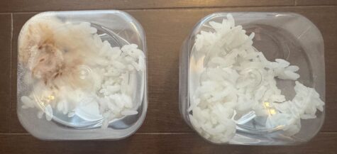 実験後2週間。プラス言葉のお米の劣化が進み、マイナス言葉は変化なし、劣化もせず。