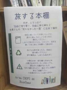 co-ba CHOFU では、今月から本の交換棚”旅する本棚 co-ba CHOFU de BookSwap”をスタートしました。