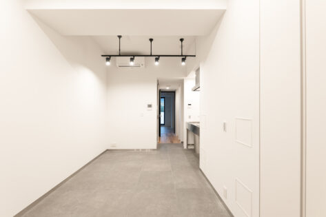 ・中央に配置された水回りを境に、前室・後室に分かれた部屋