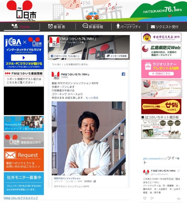8月6日(月)11時より、FMはつかいちの ラジオ番組「月刊マガジン ジャンクション」に、 co-ba hiroshimaコミュニティマネージャーの 幸田良則がゲスト出演予定です!