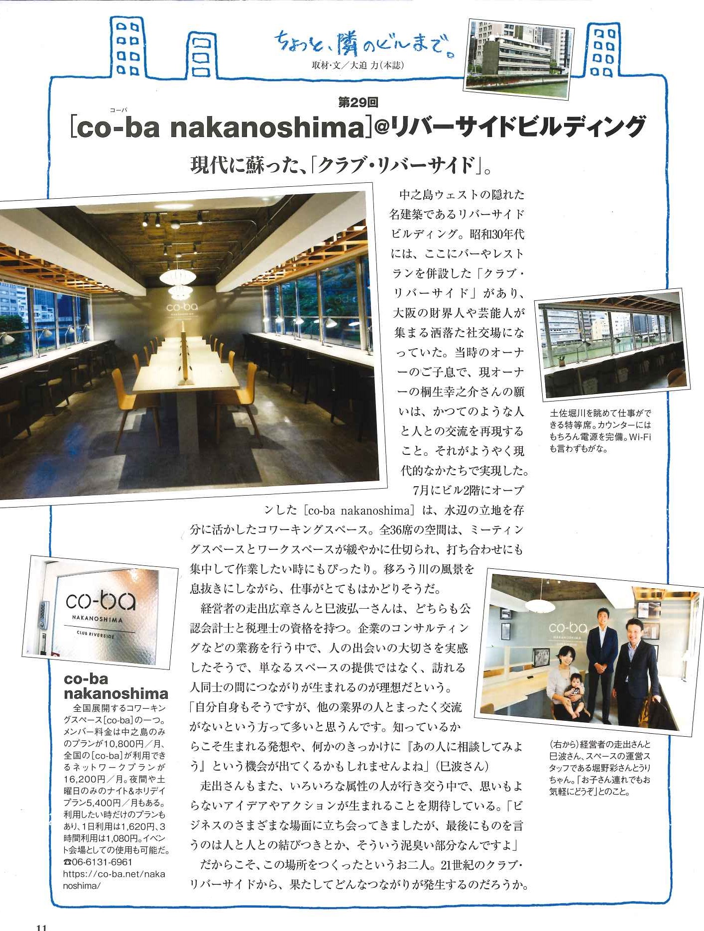 大阪中之島のちょっと個性的なフリーペーパー、『月刊島民』11月号にco-ba nakanoshimaが掲載されました!