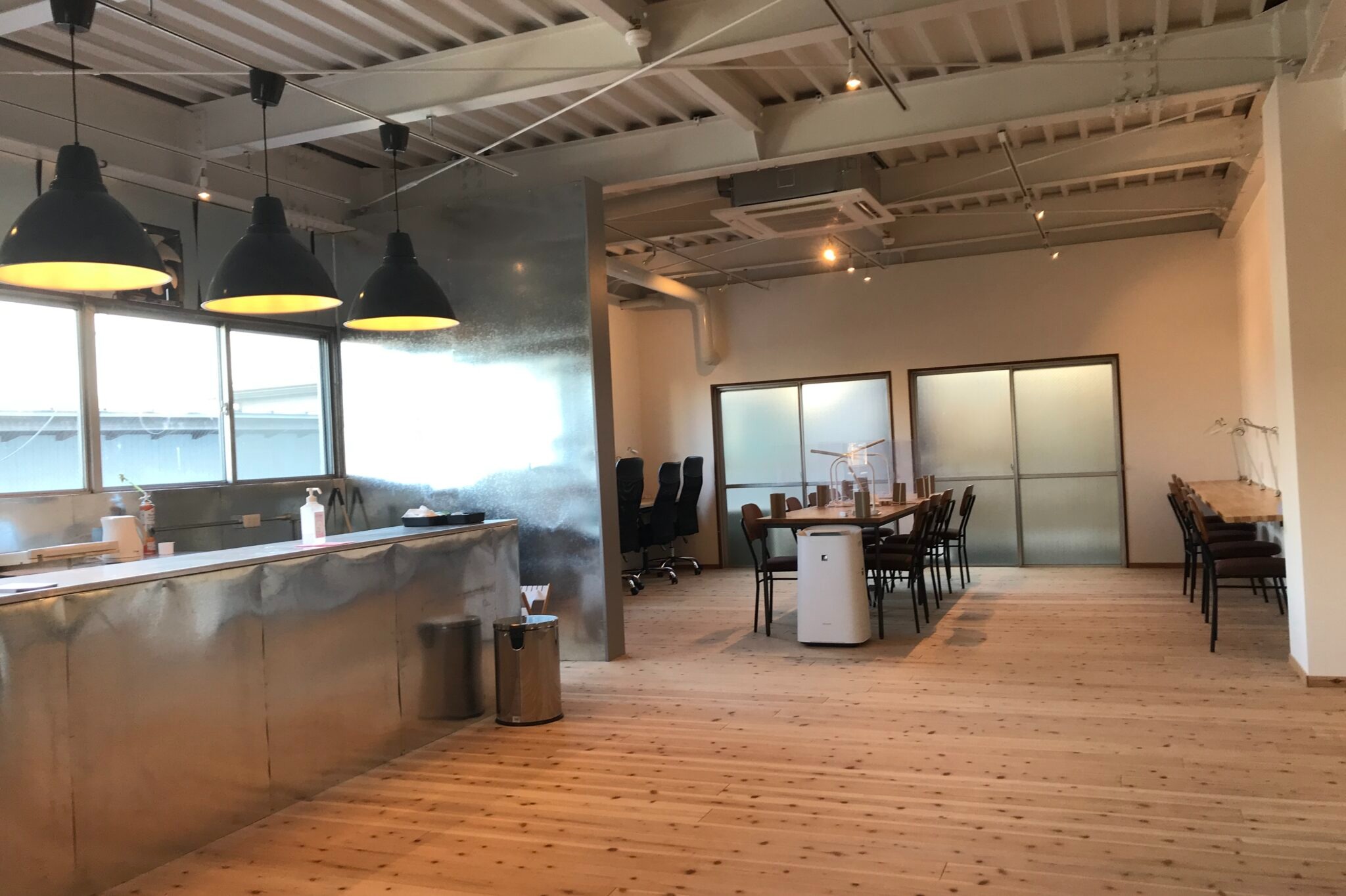 城下町にある商店街の空きビルをリノベーションしたレトロな空間、 ゲストハウスも併設した、シェアードワークプレイス。