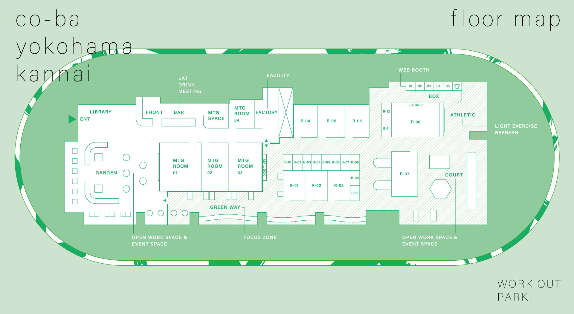 「co-ba 横浜関内」は、"WORK OUT PARK!"をコンセプトに、思いきり仕事に集中でき、